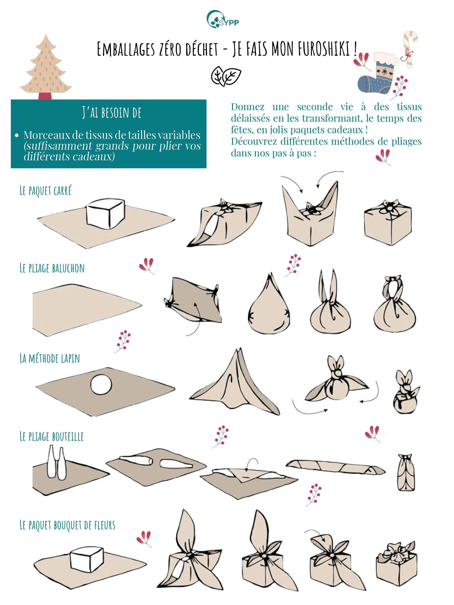 Qu'est-ce qu'une ressourcerie ?Et si cette année on mettait de côté le papier cadeau pour trouver des idées plus originales qui sauront faire leur effet sous le sapin ? Nous sommes de plus en plus nombreux à recourir à la technique traditionnelle japonaise du furoshiki, qui consiste à plier et nouer du tissu. Vous pouvez également recourir au papier journal, et le customiser selon vos idées avec de la peinture ou des pétales de fleurs séchées.