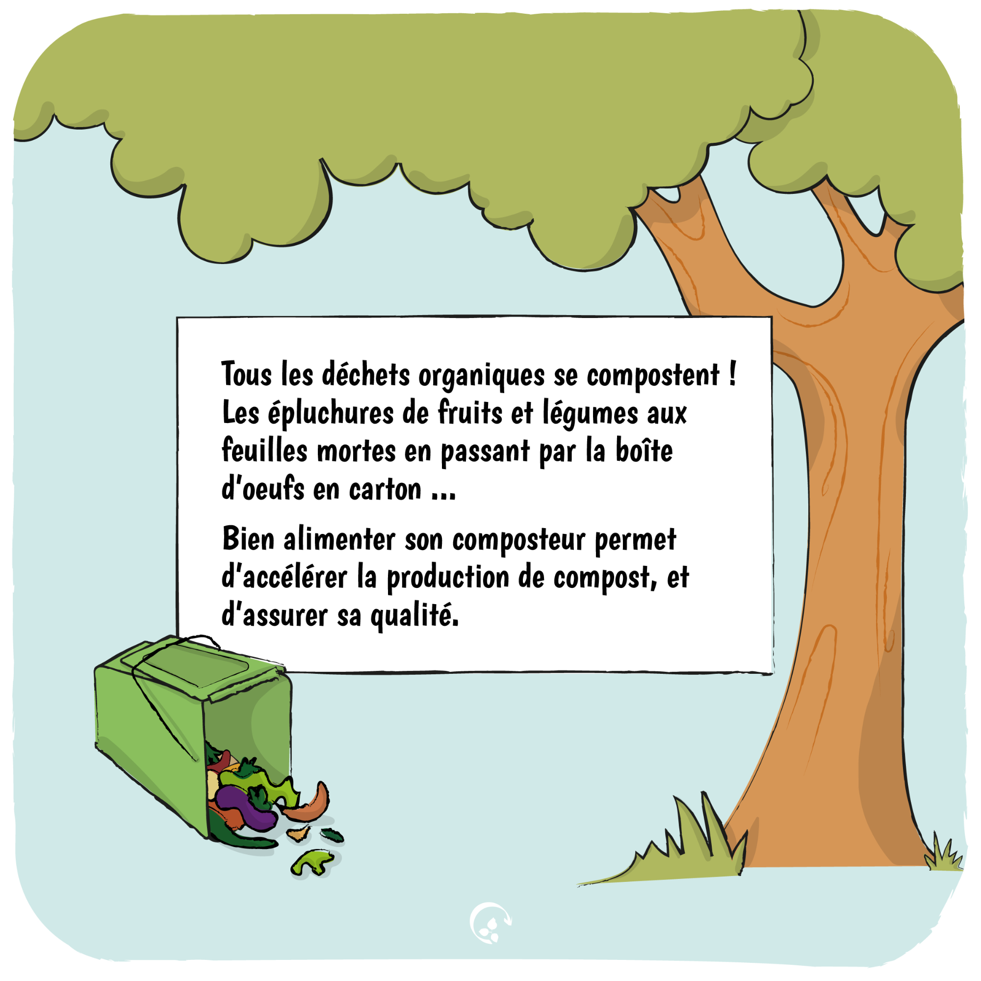 Les déchets coupés en petits morceaux ou broyés se décomposeront plus rapidement. Les litières et excréments nécessitent une gestion indépendante.
