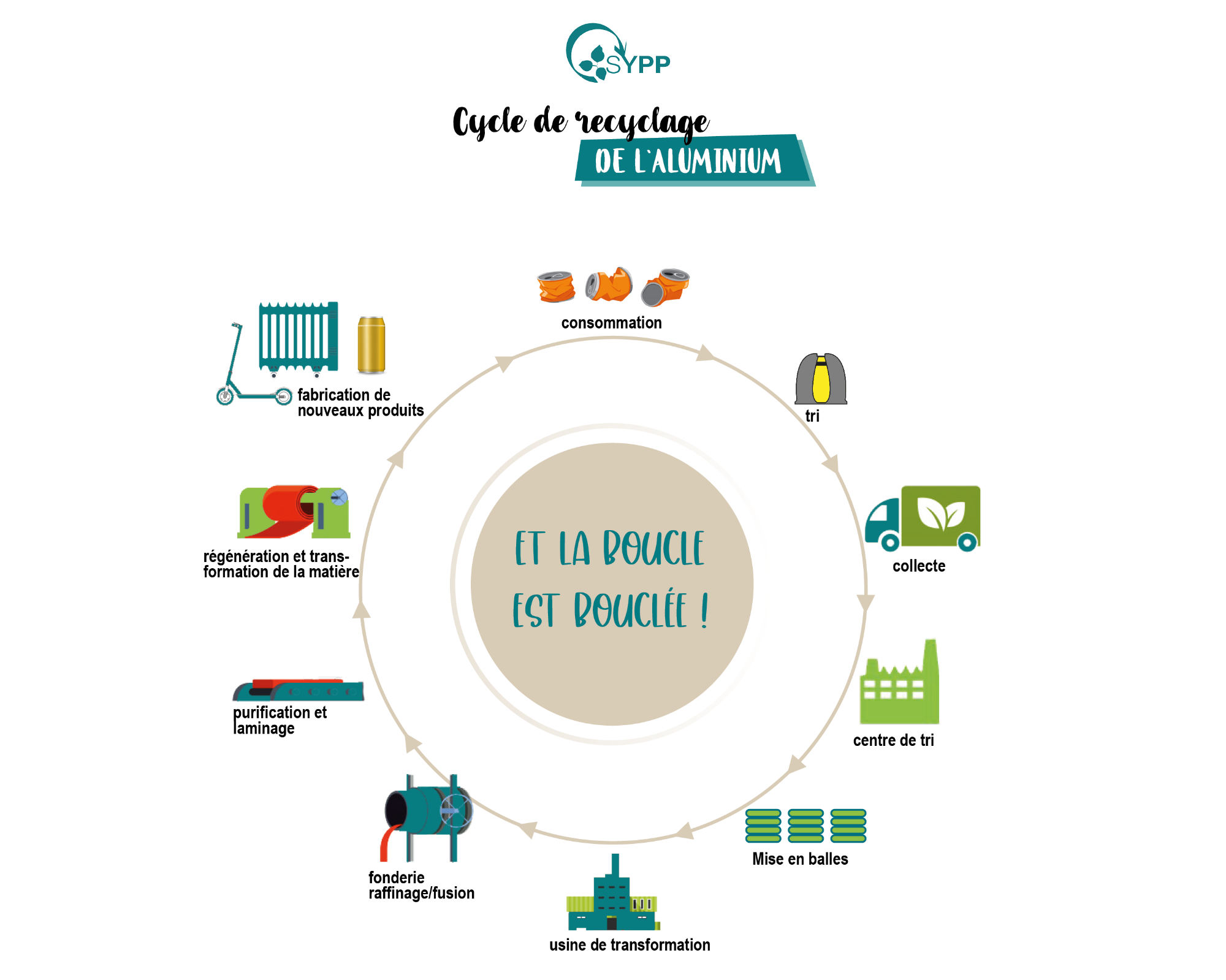 Le contenu du bac jaune est envoyé au centre de tri où les déchets sont séparés en différents flux (selon leur matière) : plastique, papier, métaux … Une fois qu’ils sont séparés, les déchets sont mis « en balles », puis envoyés vers des usines de recyclage. Les déchets recyclables du territoire du SYPP sont envoyés au centre de tri Métripolis à Portes-lès-Valence, dans la Drôme. La modernisation de ce site permet depuis novembre 2021 d’accueillir les flux issus de l’extension des consignes de tri. Mais où partent ces déchets ?
